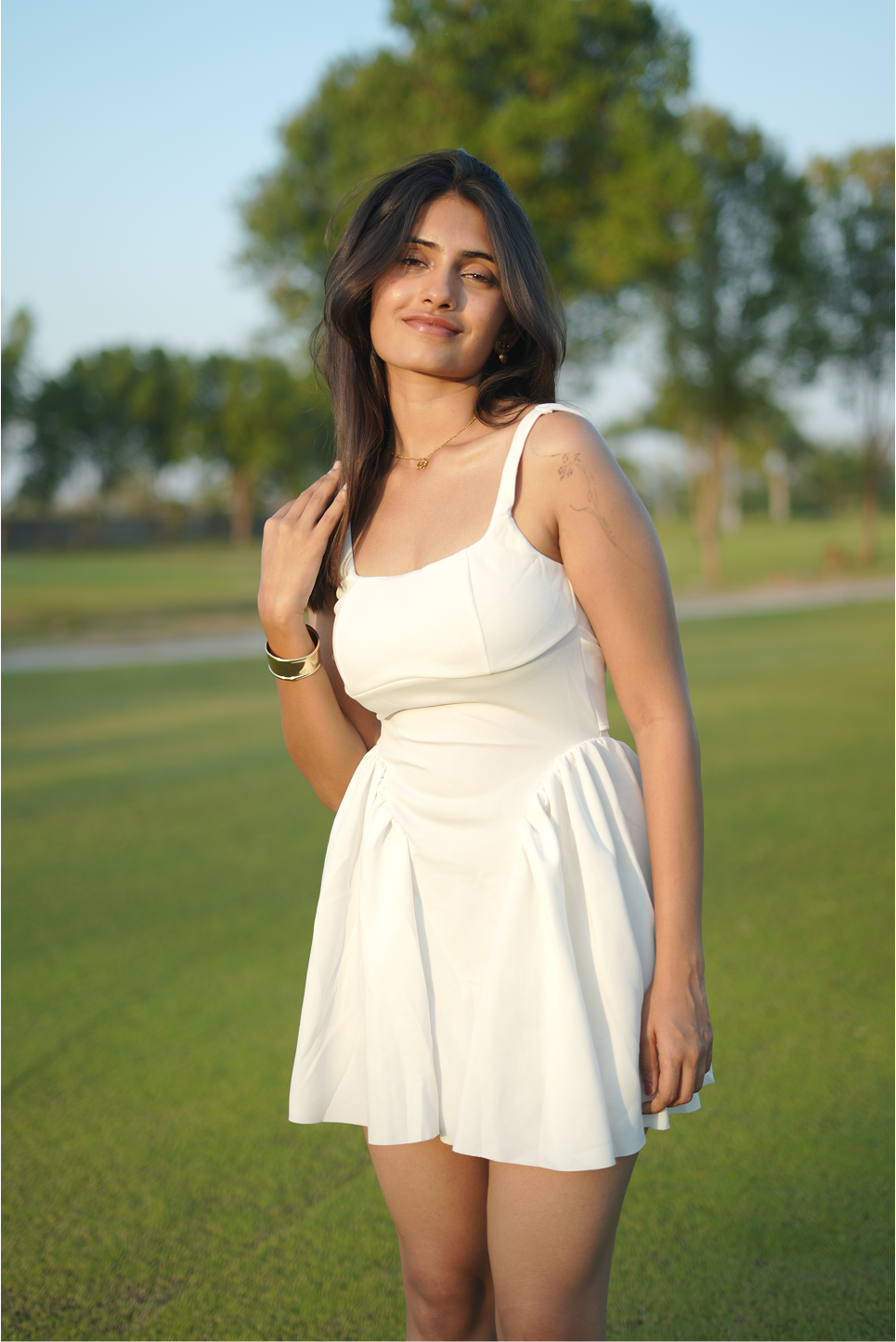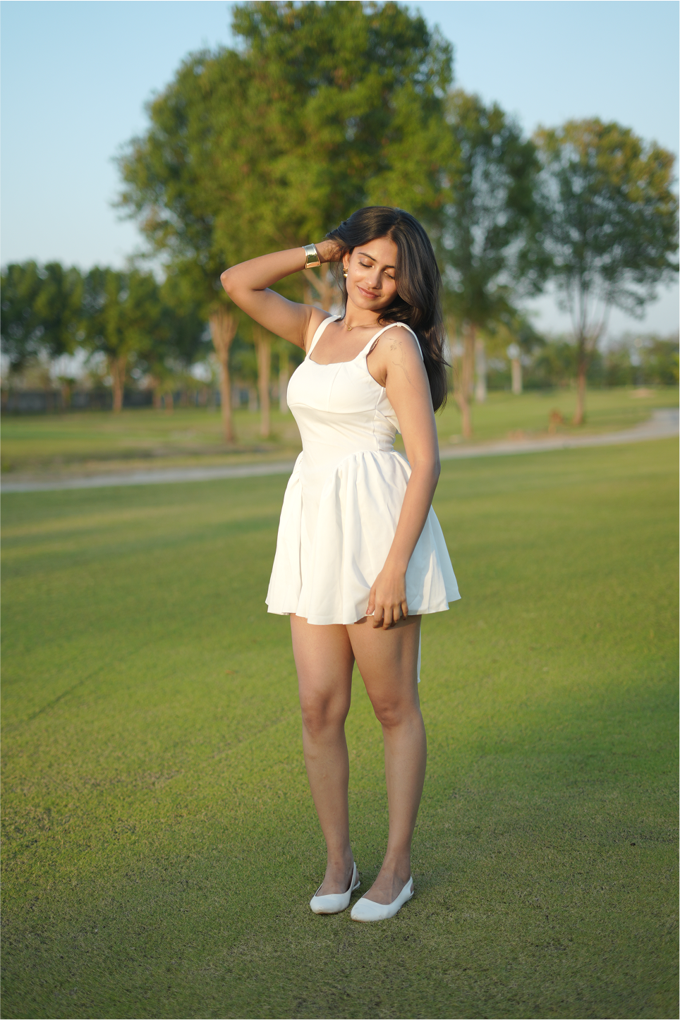 The serena dress is a cute white, flowy piece with a flattering feminine silhouette and a sweet bow at the back. Its soft, airy fabric makes it perfect for any special occasion, whether it’s a garden party, brunch with friends, or a day out exploring the city. You’ll feel elegant yet effortless, with a touch of playful charm!